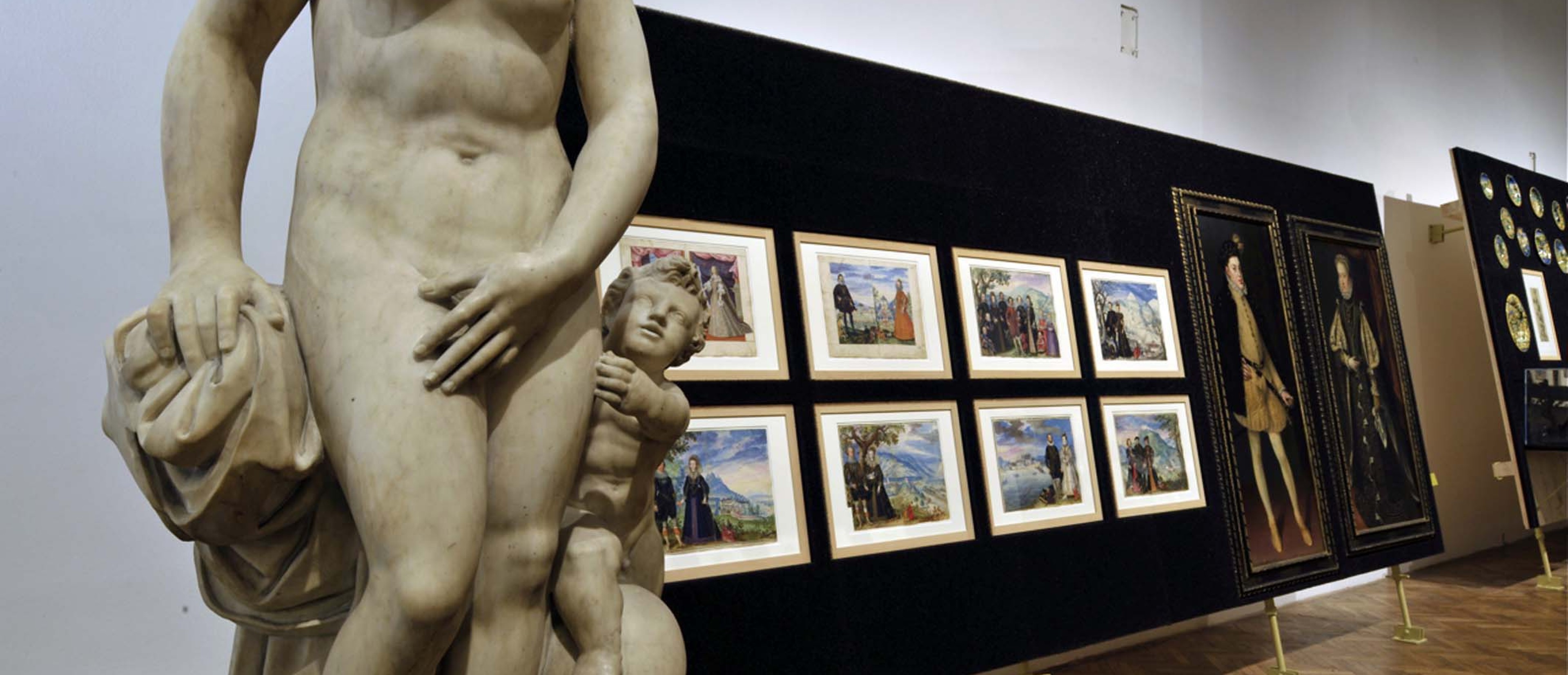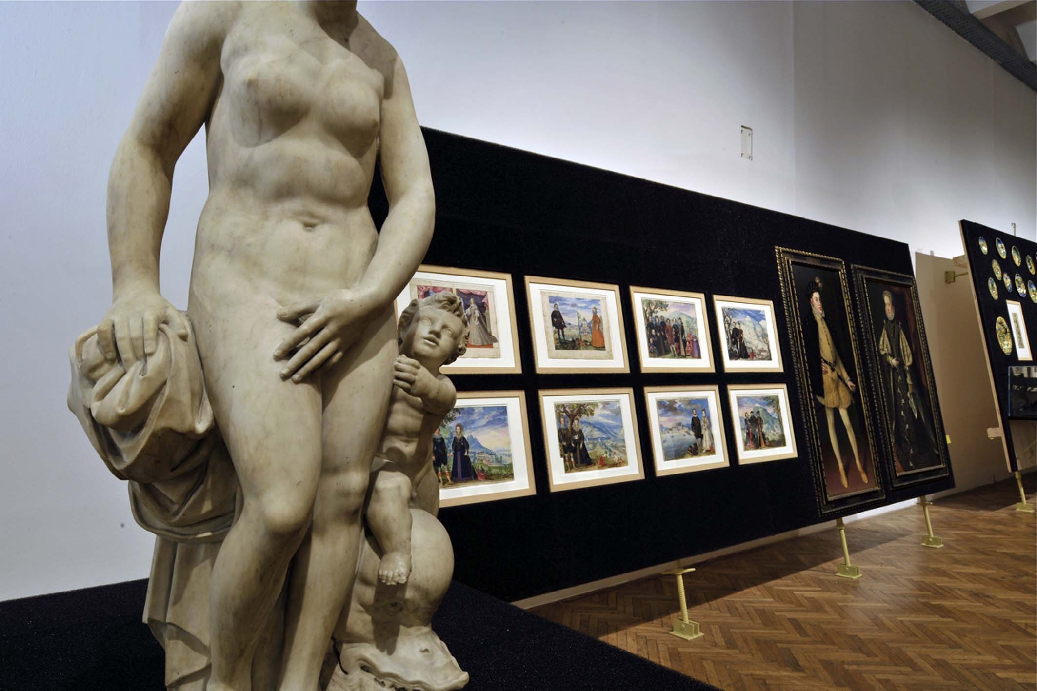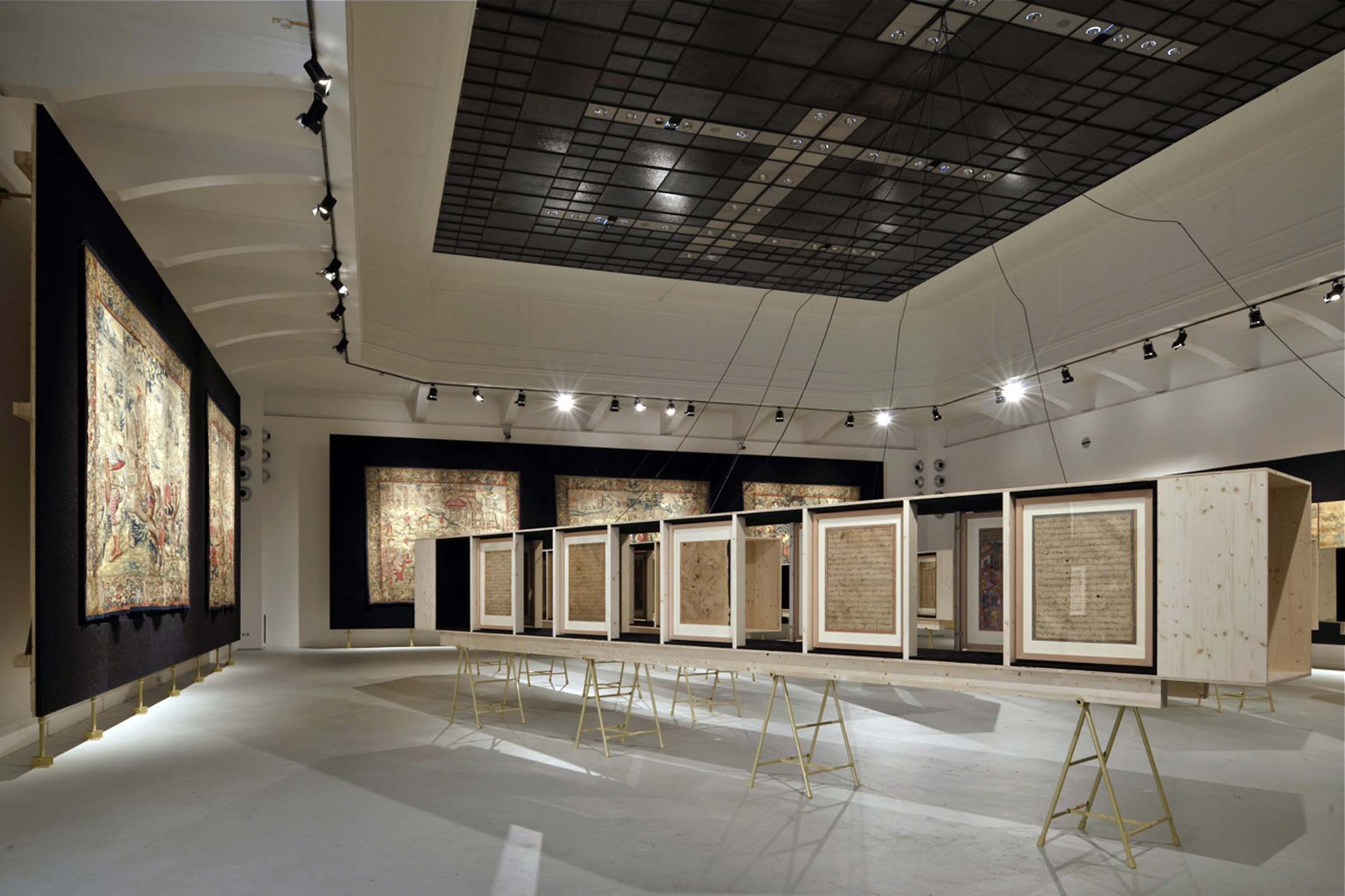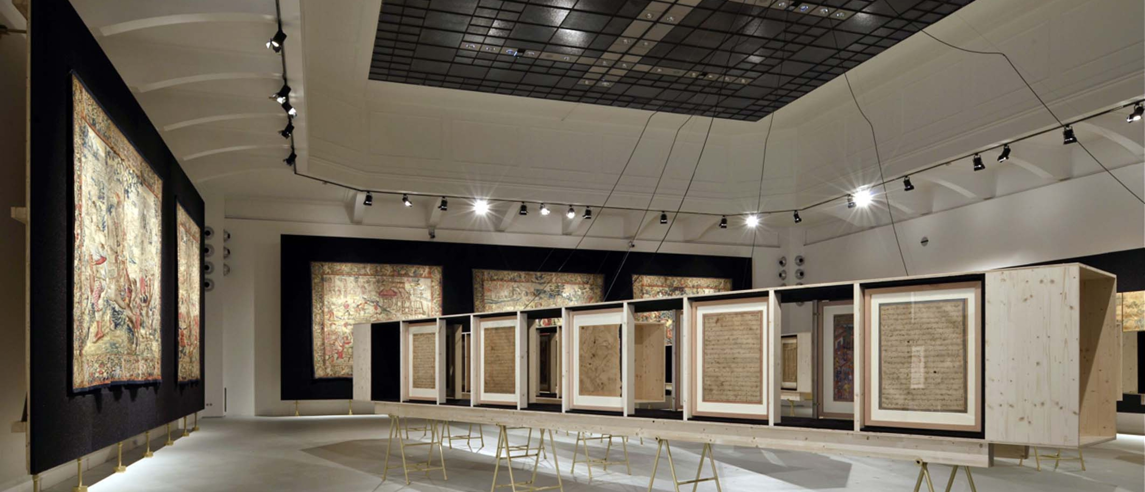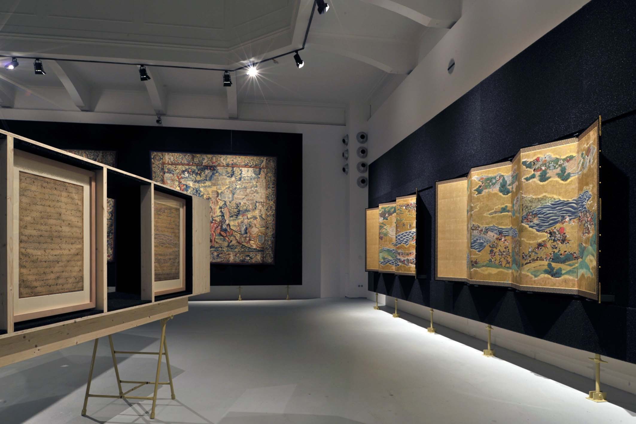 Themen der Ausstellung Fürstliche Repräsentation in Asien und Europa. Die neue Sicht auf die Welt. Handel und Diplomatie. Netzwerke der Kunst. Die Darstellung des Fremden. Der Mensch im Zentrum der Kunst (Europa). Ornament und Erzählung (Orient). Symbol und Landschaft (Ostasien).