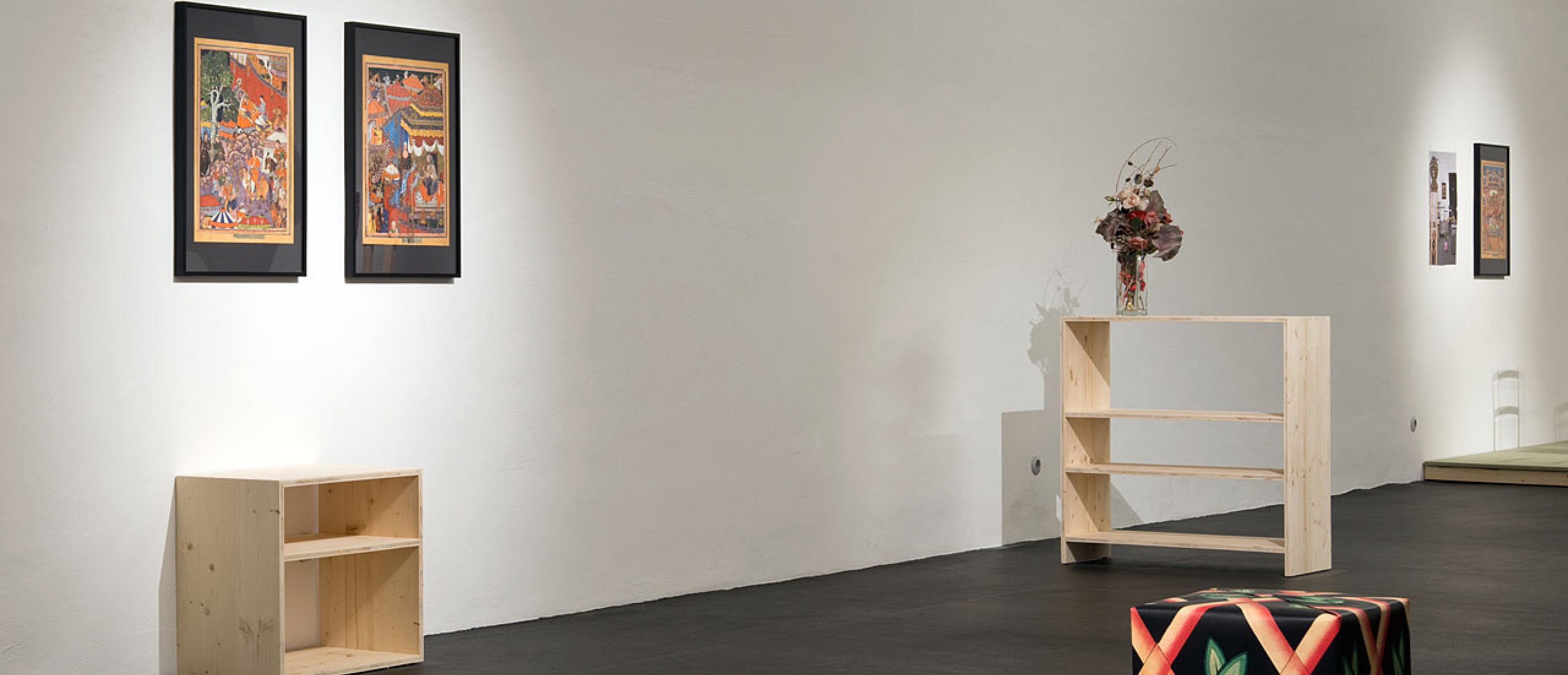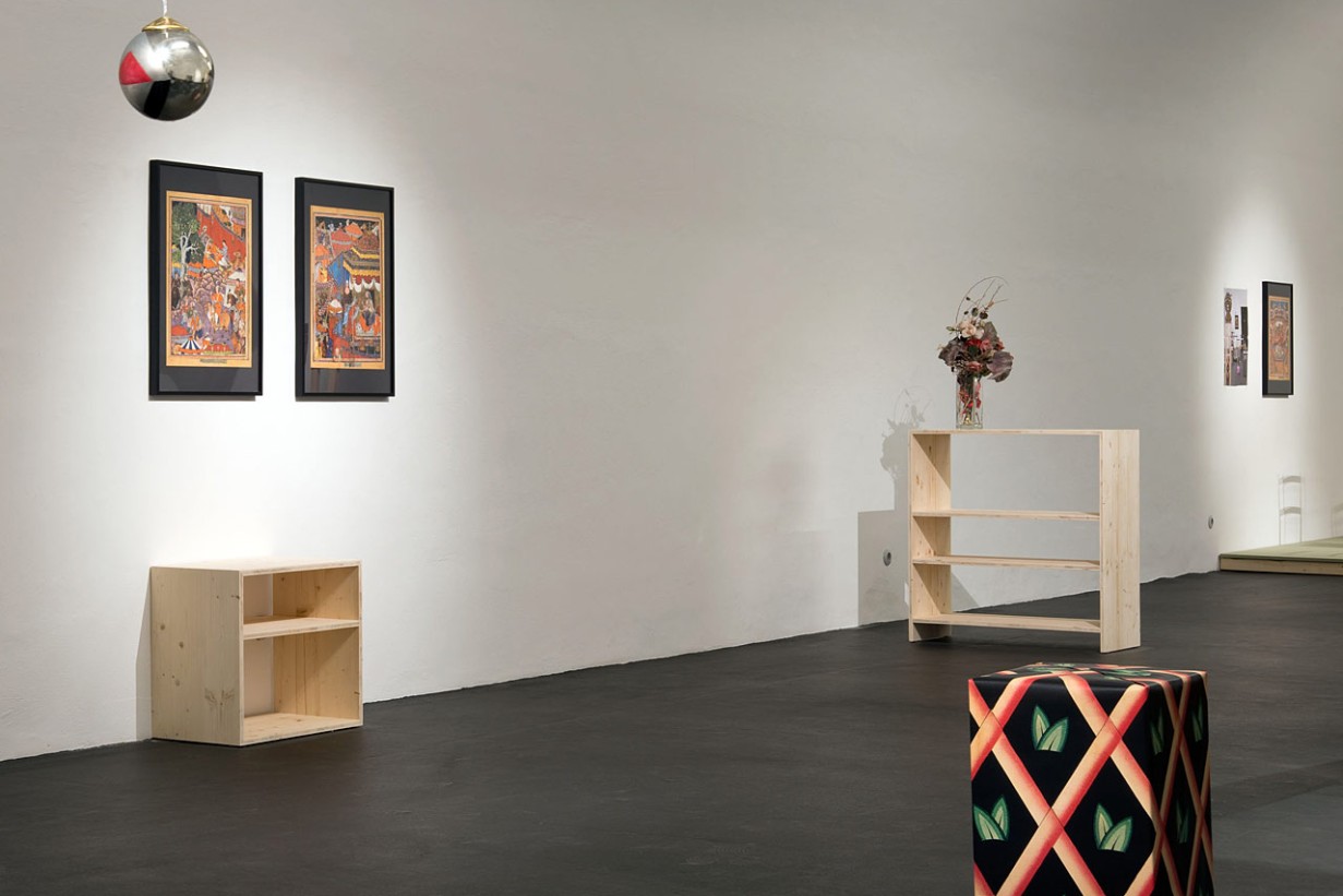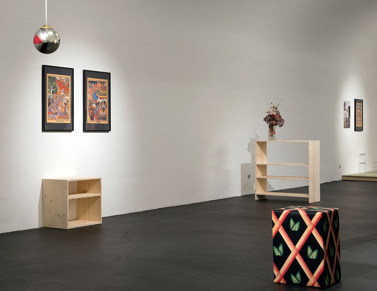 Mit eigens von einem MAK-Tischler für Kathi Hofer angefertigten Objekten, die sie nach Ende der Ausstellung in ihrer Wohnung nutzen wird, thematisiert die Künstlerin das Phänomen des Sich-Einrichtens eines Raumes für Freizeit und Muße und stellt sich damit gegen die professionalisierte Form einer künstlerischen Selbstverwirklichung. So kauft sie nach dem Vorbild des Design-Klassikers Superleggera von Gio Ponti (Modell 699), den sie in der Studiensammlung Sitzmöbel findet, billig kopierte Stühle, die sie dem Original annähert, und reproduziert Blätter aus der MAK-Kunstblättersammlung als Poster.Hofer bezieht sich dabei auch auf eine Gründungsidee des MAK, die Vorbildersammlung, die sie für den eigenen Gebrach interpretiert.