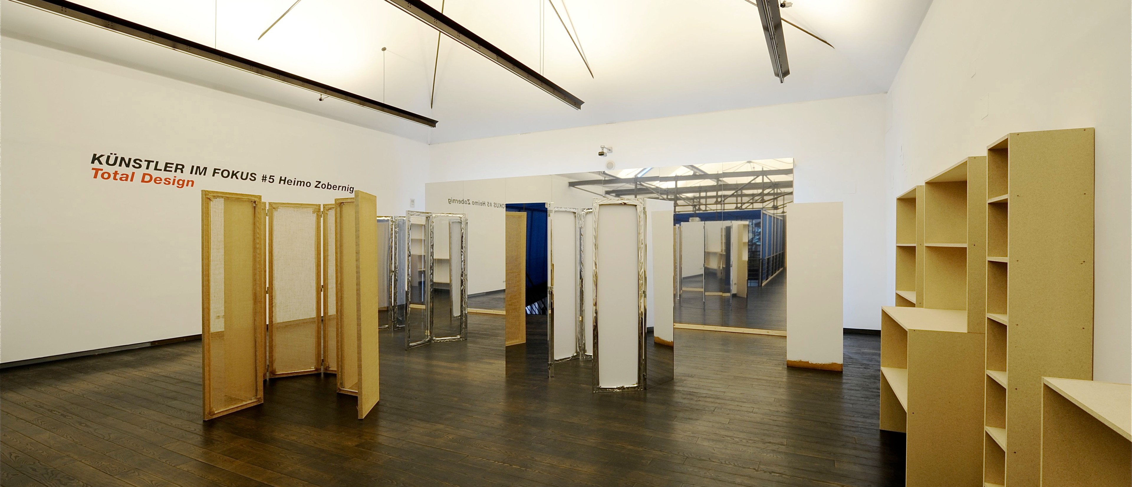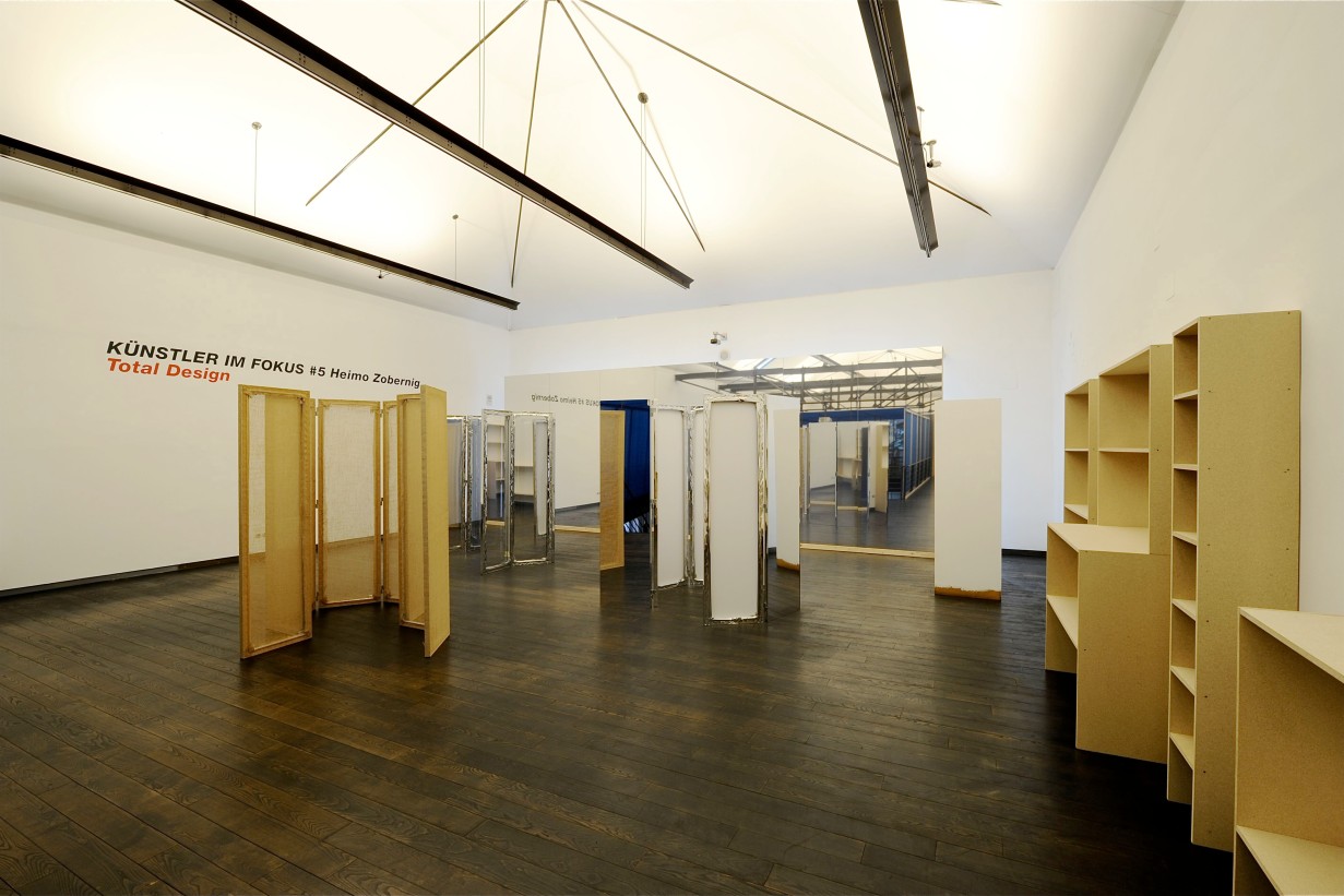 In der MAK-Ausstellung TOTAL DESIGN verdichtet sich eine Vielzahl von unterschiedlichen Bezugssystemen und Verweisen, die einerseits eine Vorstellung des Musealen implizieren, andererseits scheinbar im Gegensatz zu Zobernigs gewohnter Reduktion von Elementen stehen. Auf diese Weise schafft der Künstler ein Zusammenspiel imaginärer Resonanzräume, die unmittelbar mit singulären Objekten, Werkgruppen und räumlichen Interventionen korrespondieren und als Transporter des von ihm angezettelten Diskurses fungieren.
