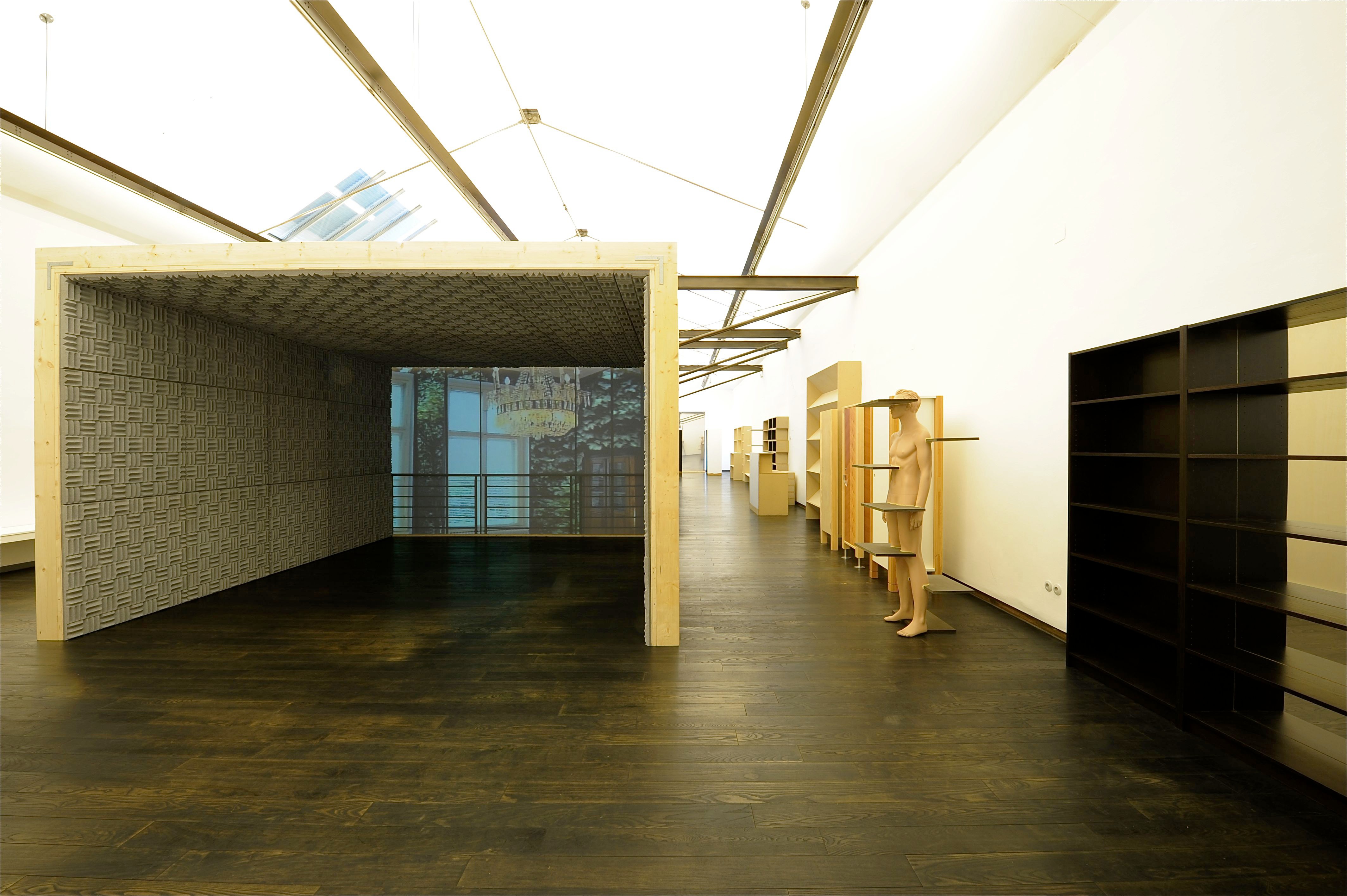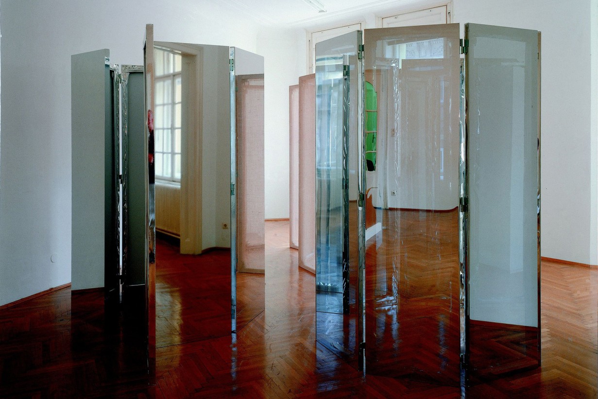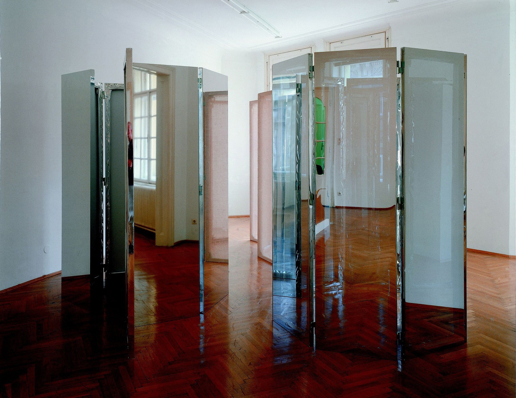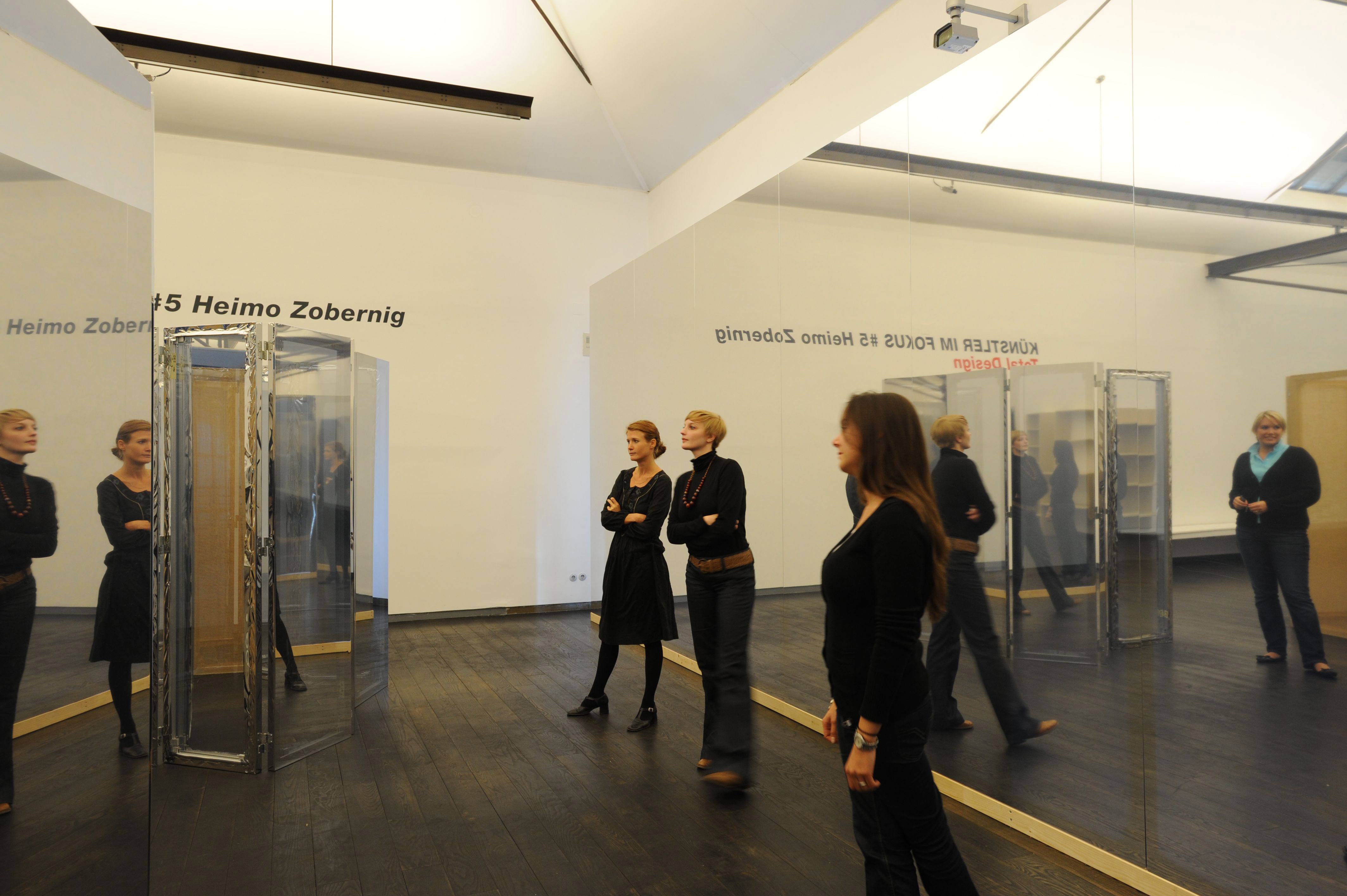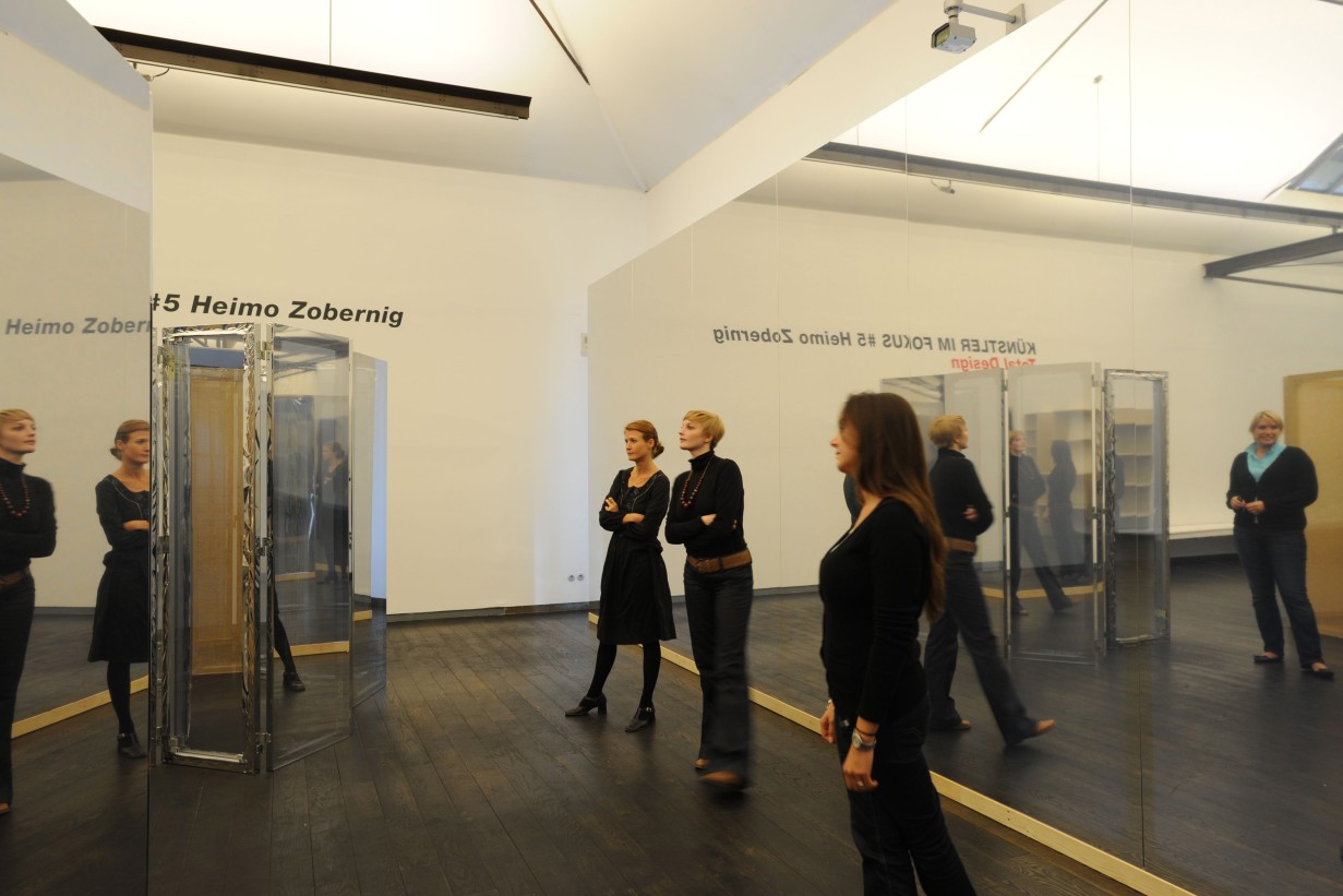 Eine Reihe weiterer hier präsentierter Arbeiten setzt sich mit Mechanismen der Wahrnehmung auseinander. Durch das Ausloten des Ausstellungsraums schafft Zobernig eine temporäre Installation, die durch die Zusammenstellung zweier Werke entsteht und einen labyrinthischen Raum erzeugt: Das Ensemble ohne Titel (1998) besteht aus drei Paravents, die mit dem spiegelverkleideten Wandelement ohne Titel (1999) den Betrachter in das Schaustück involvieren; die Idee des Panoramas hingegen zeigt sich in der auf ein architektonisches Versatzstück verweisenden Arbeit ohne Titel (2008).