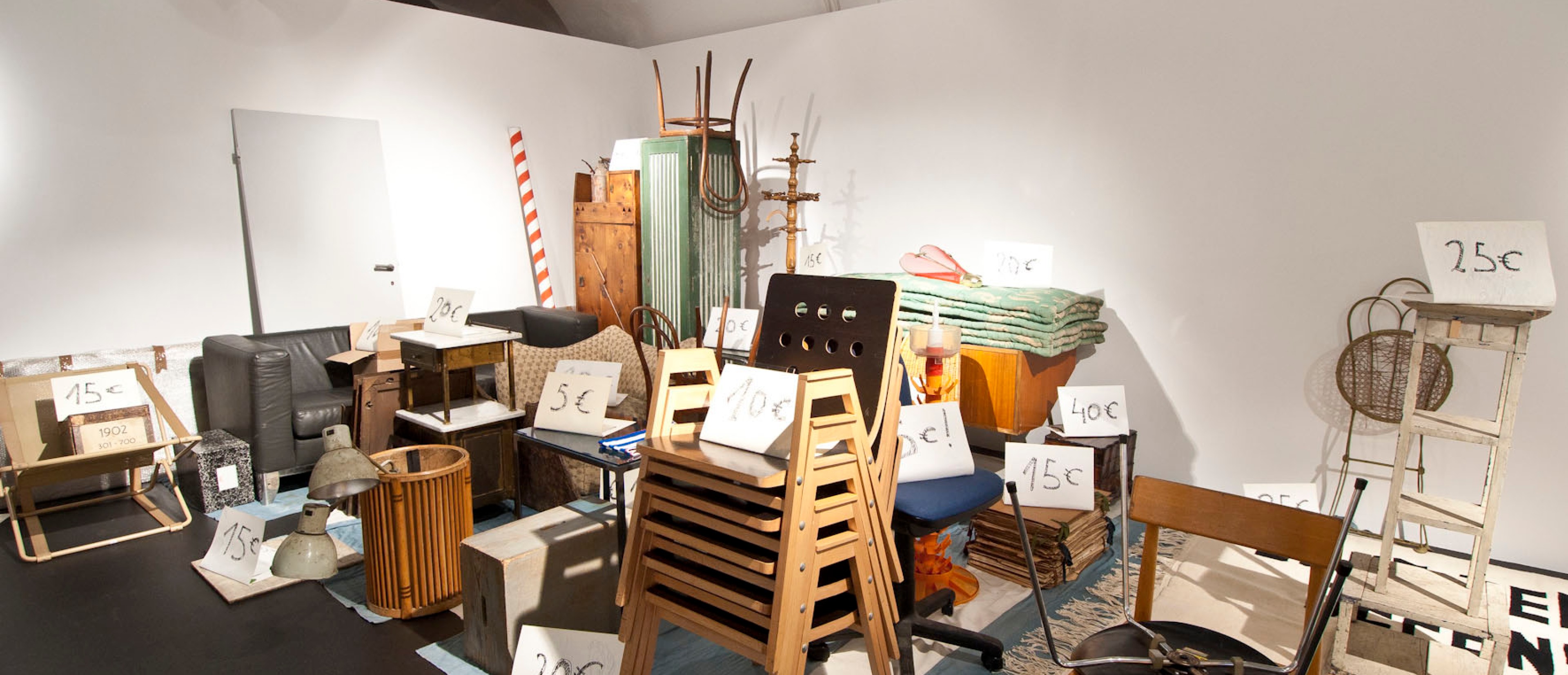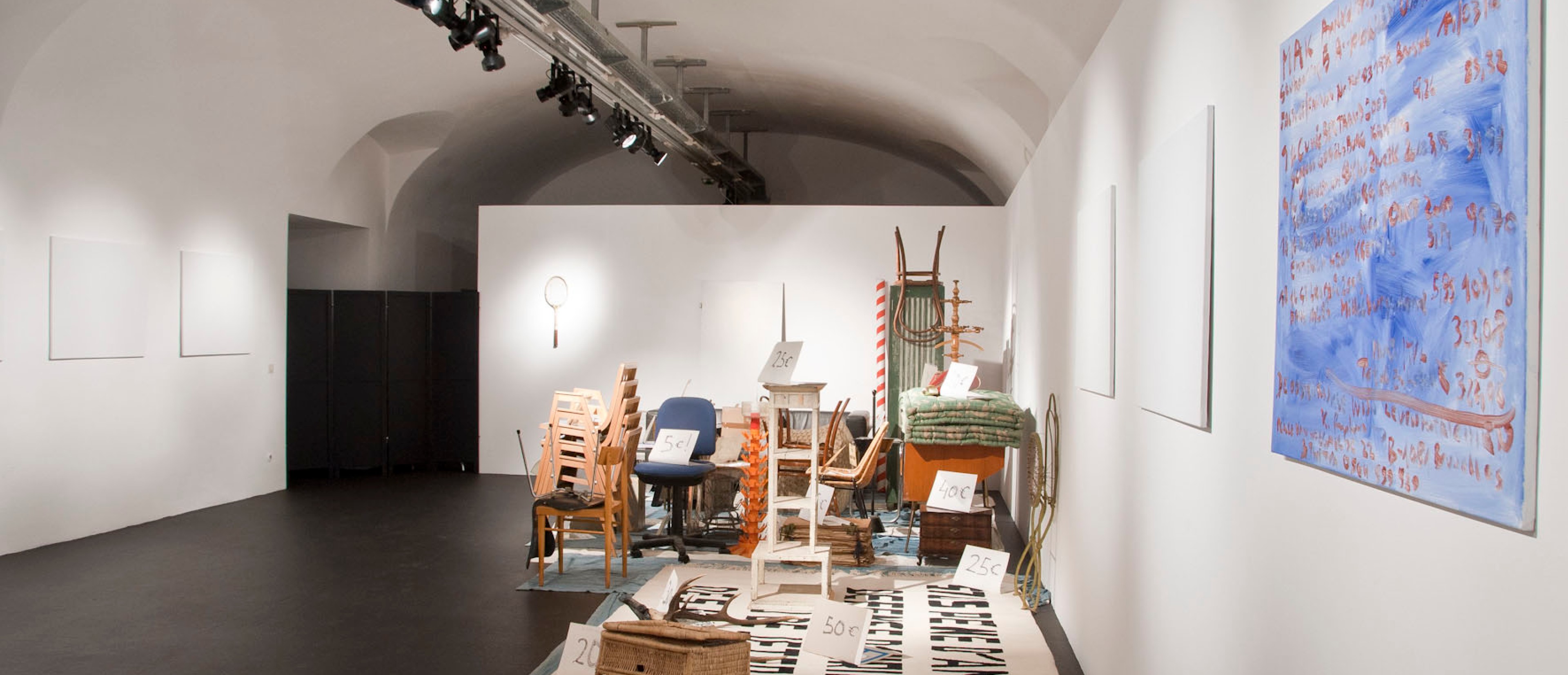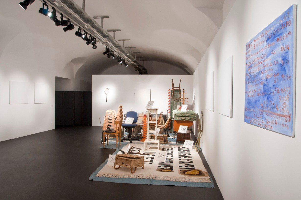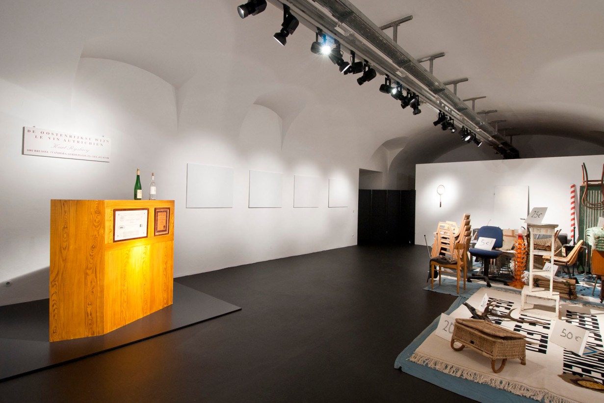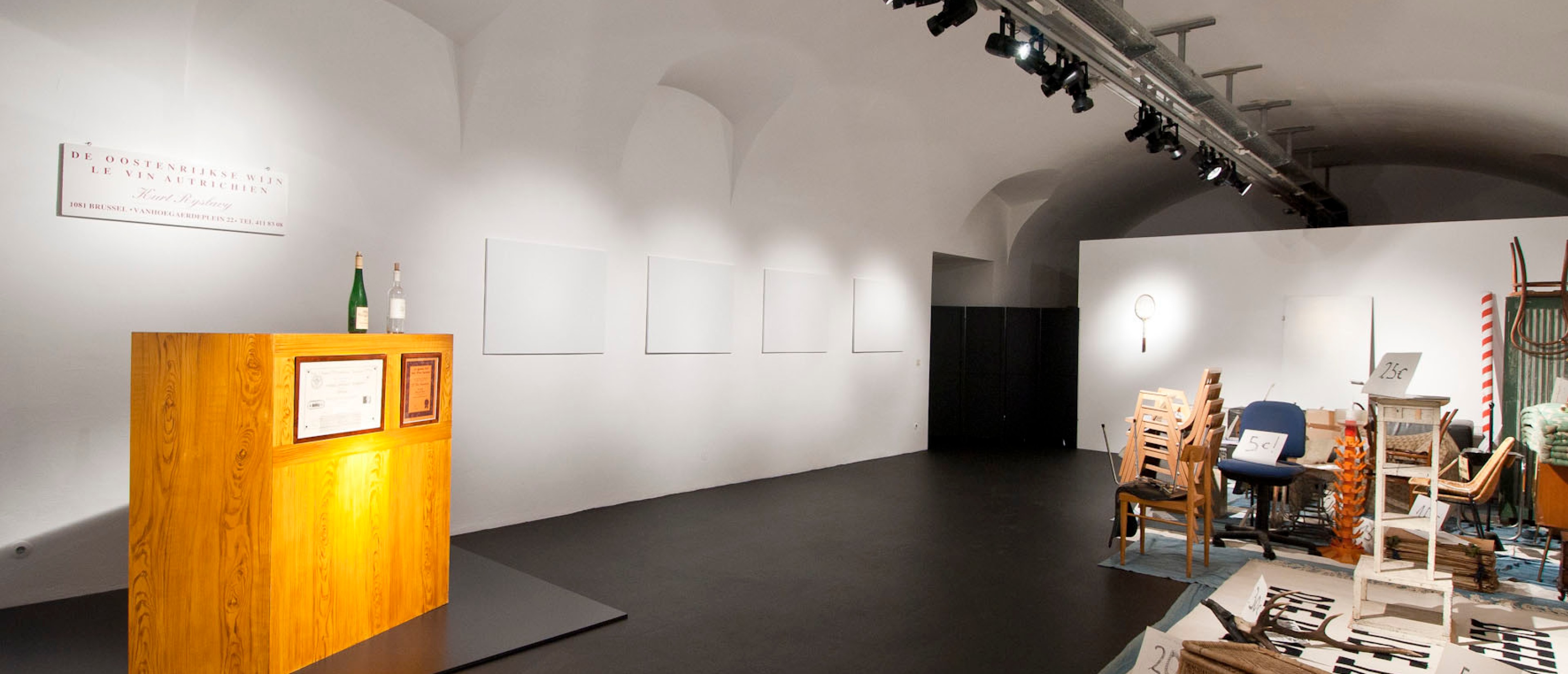 Als Weinhändler und Kunstsammler, Sonntagsmaler und Konzeptkünstler hat Kurt Ryslavy im MAK eine vielschichtige Ausstellung zusammengestellt, in der er das ironische Abbild des Kunstmarkts inszeniert und diesen damit hinterfragt. Ausgesuchte Gegenstände aus der MAK-Sammlung und aus dem Hausinventar werden wie auf dem Flohmarkt kostengünstig scheinbar zum Verkauf angeboten, österreichische Winzer bieten ihren Wein zu Ab-Hof-Preisen an. Dazwischen befinden sich die konzeptuellen Werke des Künstlers: eine Weinbar, die einst für eine Ausstellung von Harald Szeemann entstand, ein Teppich mit dem Hinweis, das Urinieren in der Ausstellung zu unterlassen. Und an zwei Sonntagen ist der Sonntagsmaler Ryslavy in der Ausstellung präsent, um jene Rechnungen auf Leinwände zu malen, die durch den Weinverkauf am Eröffnungsabend fällig werden.