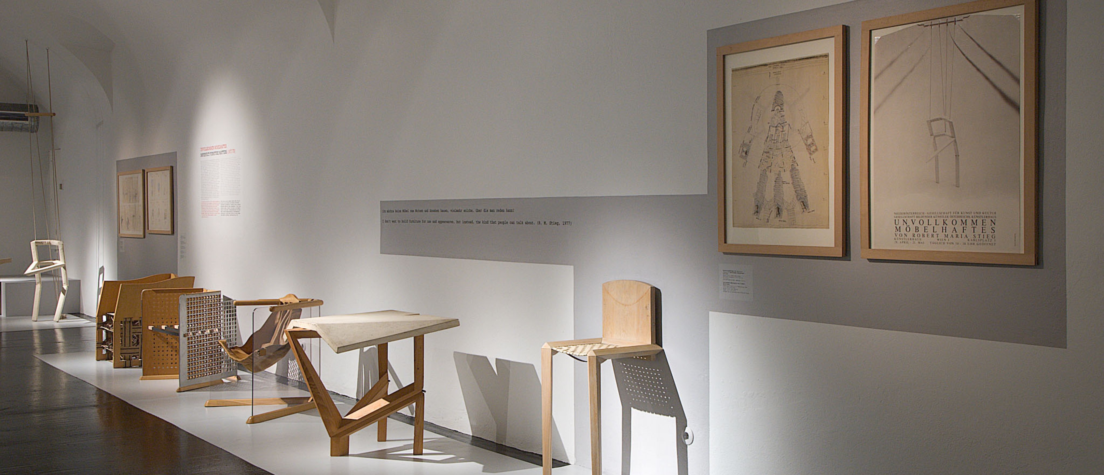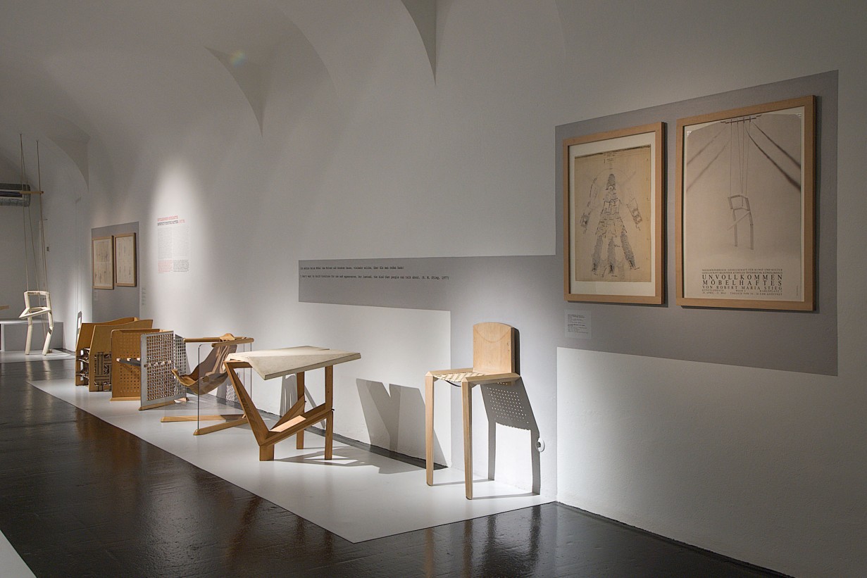 Der 1984 in Wien verstorbene Architekt und Designer Robert Maria Stieg gehörte zweifellos zu den bemerkenswertesten österreichischen Möbelgestaltern der späten 70er und frühen 80er Jahre. In der Ära nach 1968 knüpften Stiegs Möbel an die Debatten um die Möglichkeite einer gesellschaftlichen Veränderung durch qualitätvolles Design und die Notwendigkeit künstlerischer Gestaltung an. Aufsehen erregte Stieg aber vo allem mit seinen provokativen Ausstellungen Unvollkommen Möbelhaftes (1978) und Vorsicht: Polstermöbel! (1979/80). Mit seinen gesellschaftskritischen Fragestellungen und den daraus resultierenden möbelhaften Prototypen einerseits und den qualitätvollen Polstermöbeln andererseits war Stieg ein ambivalenter Vertreter einer ambivalenten Zeit.