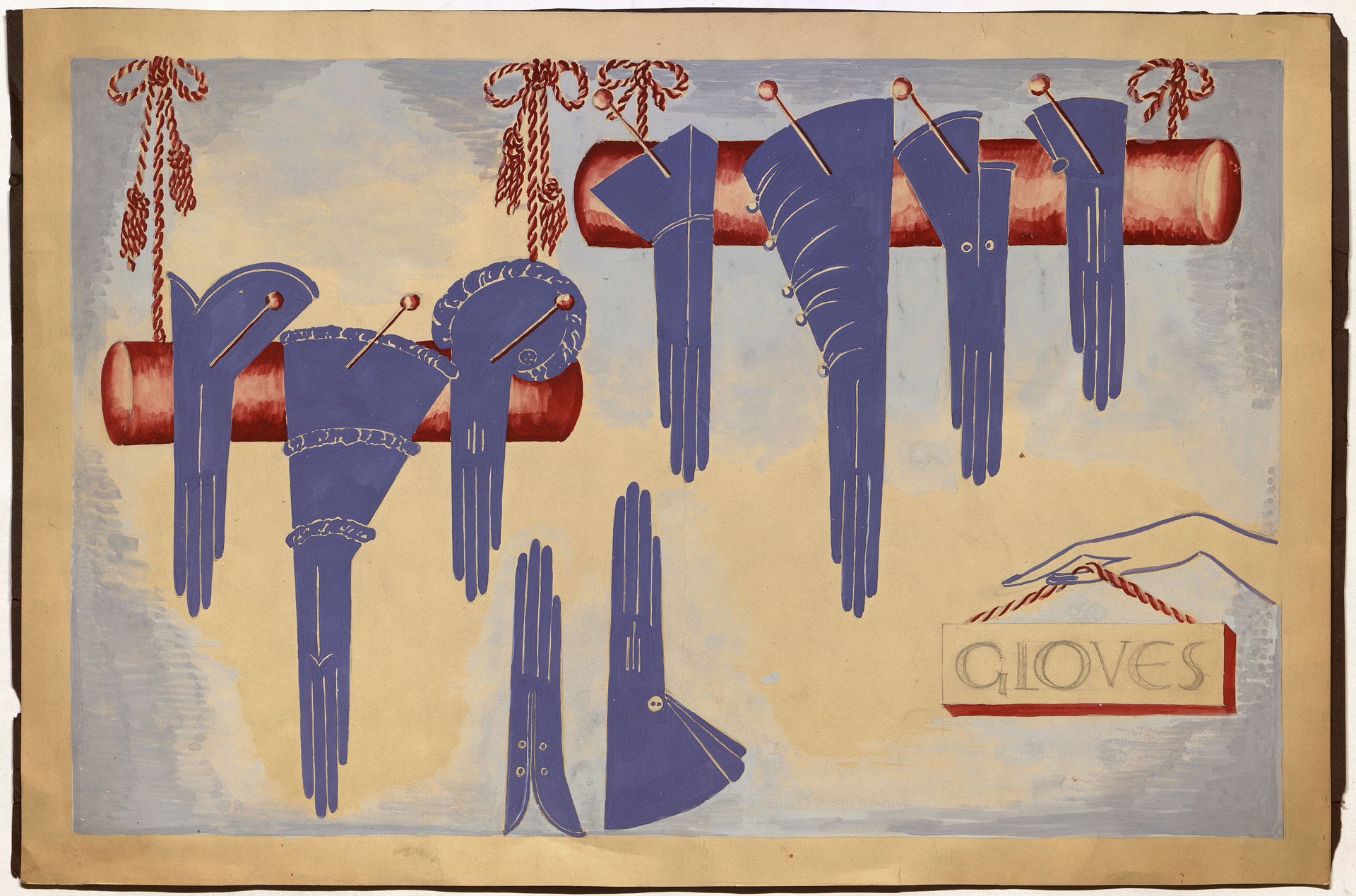 Vally Wieselthier, Entwurf für eine Handschuh-Auslage, New York, um 1930 Bleistift, Gouache auf Papier © MAK