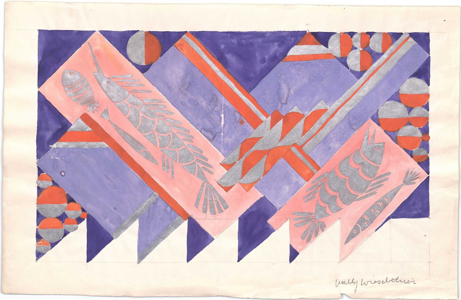 Vally Wieselthier, Entwurf für eine Kaminverkleidung, um 1927, Bleistift, Gouache auf Papier © MAK