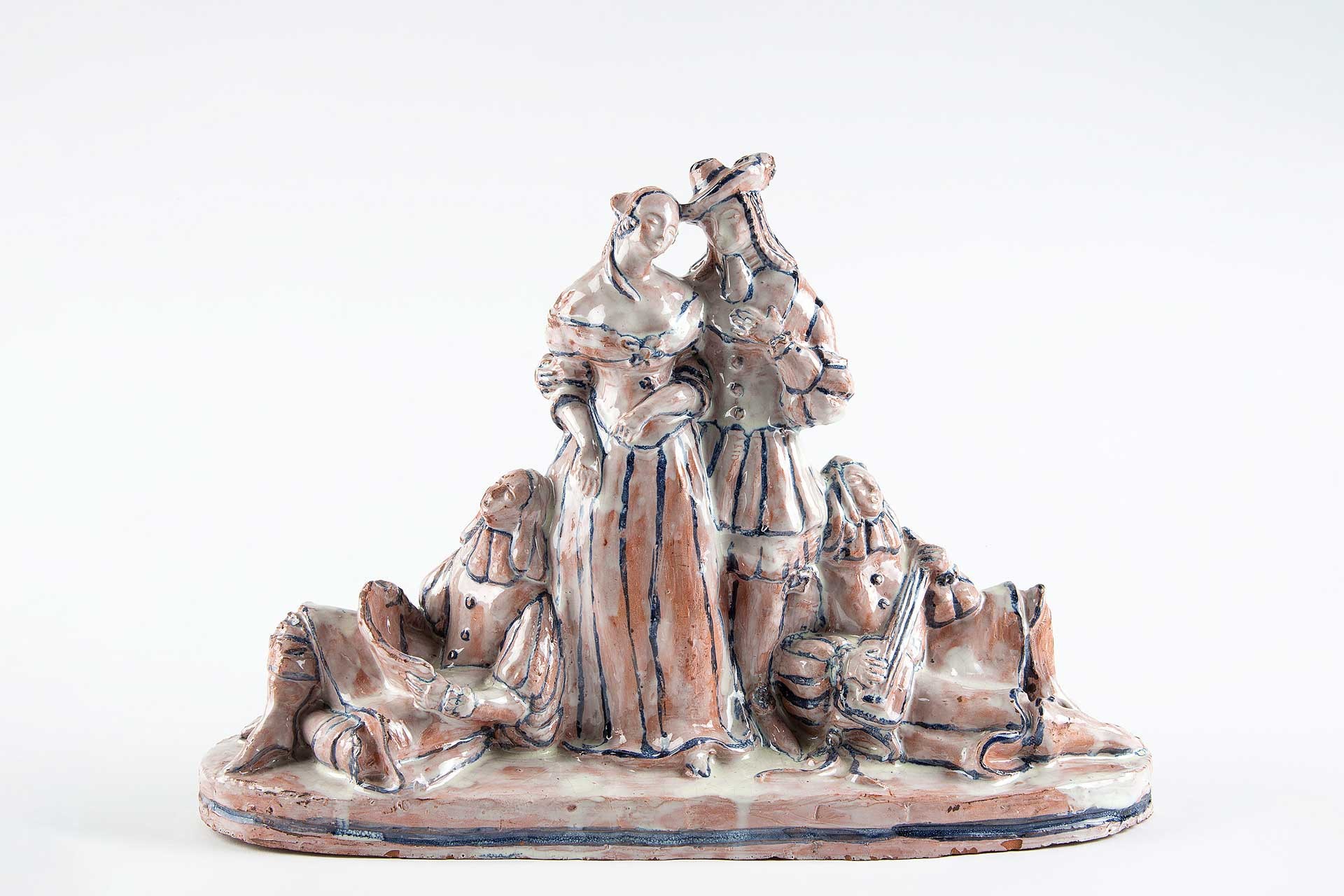 Vally Wieselthier, Figurengruppe, 1917, Roter Scherben, weiß-blau glasiert © MAK/Kristina Wissik