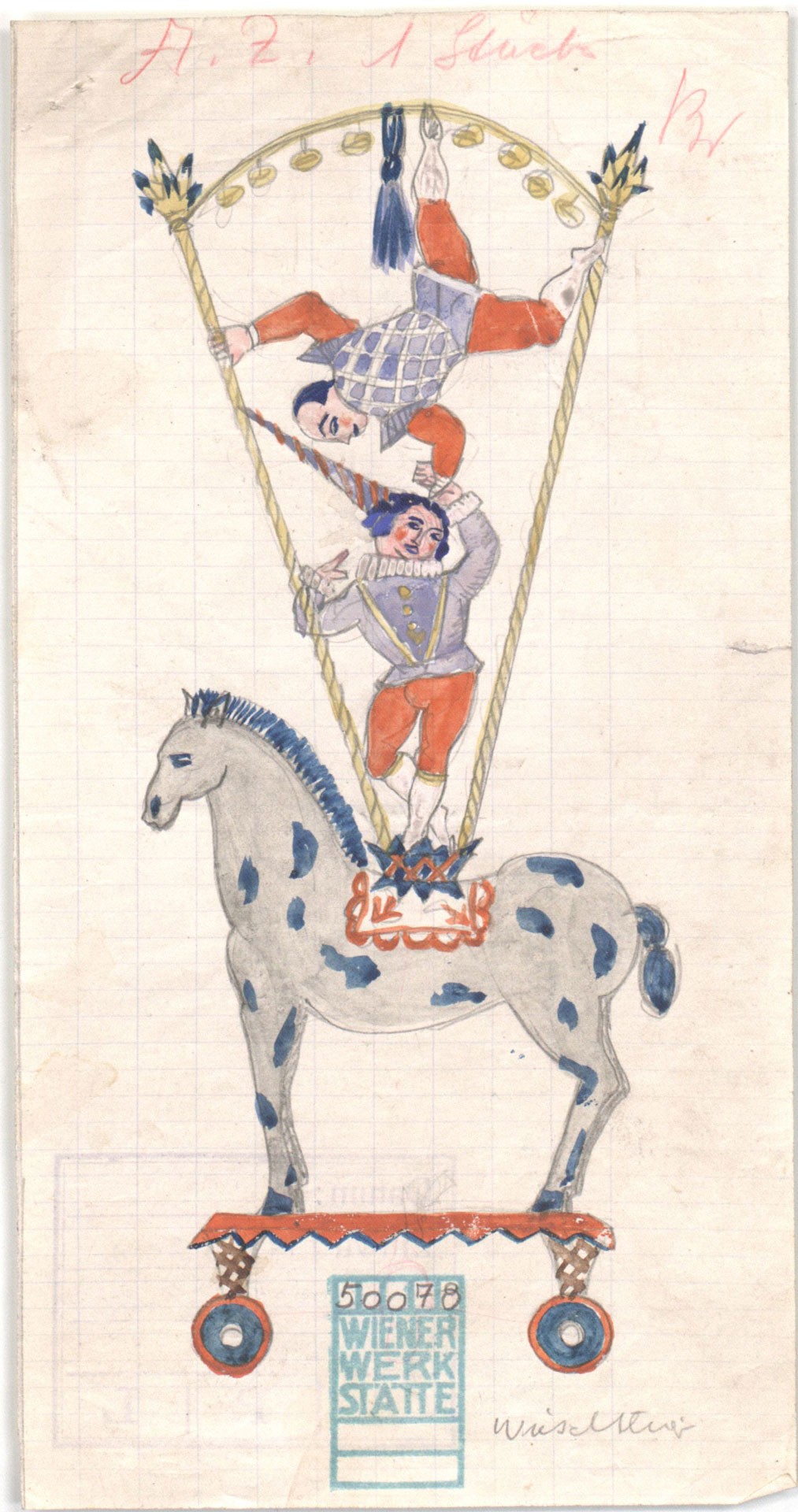 Vally Wieselthier, Entwurf für ein Spielzeug, um 1919, Bleistift, Gouache auf Papier © MAK