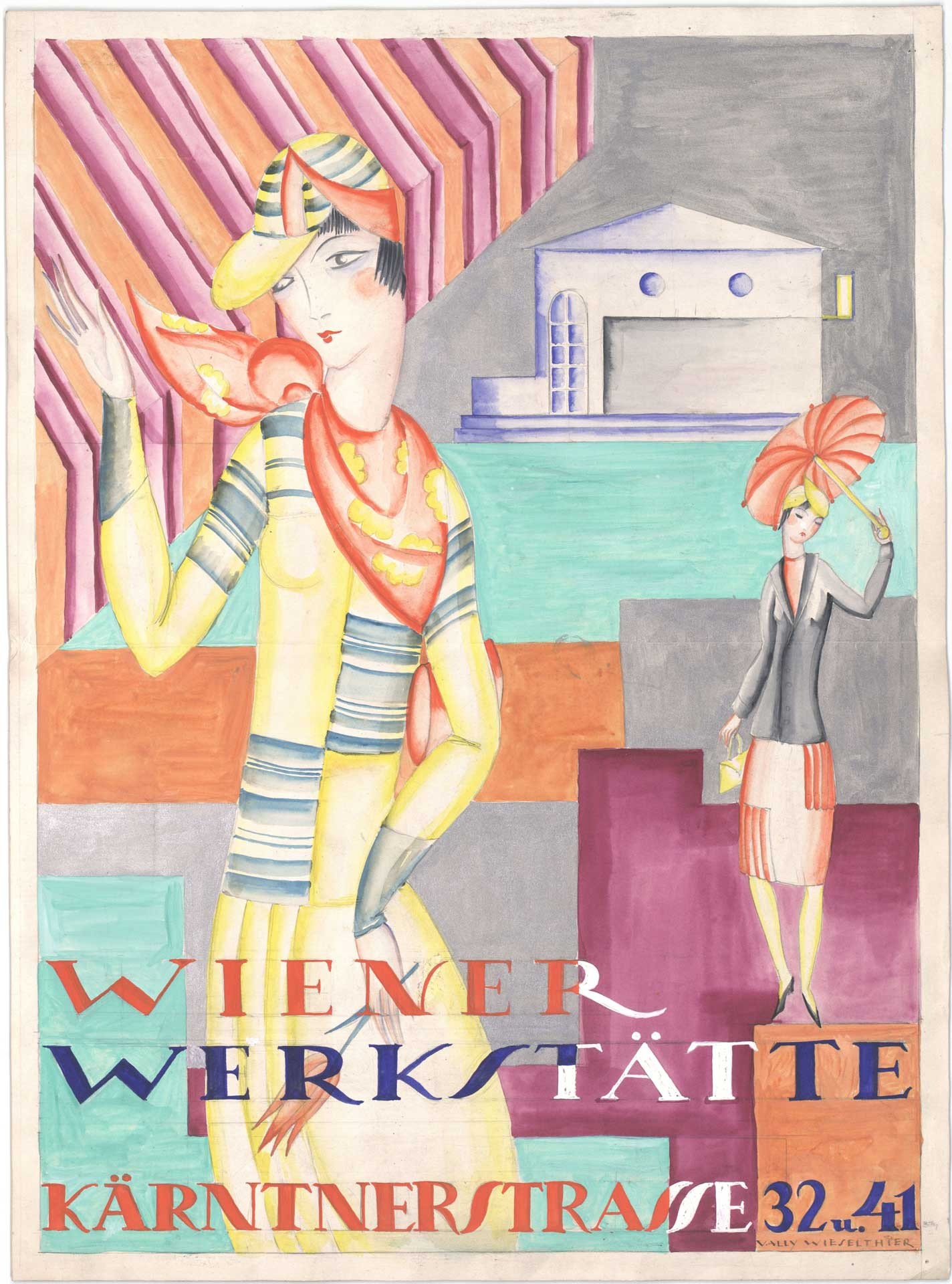 Vally Wieselthier, Entwurf für ein Wiener-Werkstätte-Plakat, 1928, Bleistift, Gouache auf Papier © MAK