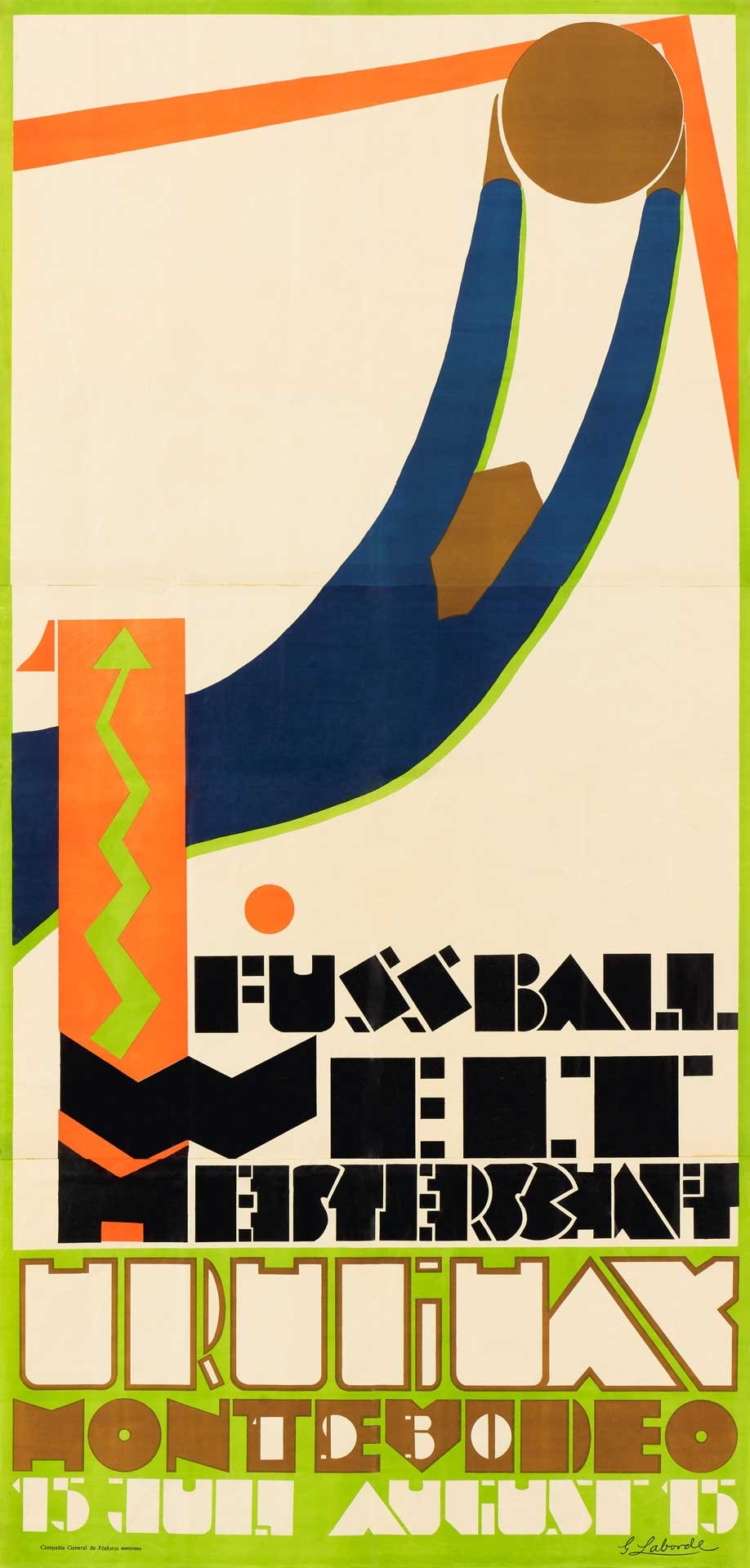 Charles Laborde, 1. Fußball-Weltmeisterschaft. Uruguay. Montevideo., 15.6.–15.8.1930 Druck: Compania general de fosforos, Montevideo Repro nach einer Lithografie MAK, PI 952 © MAK