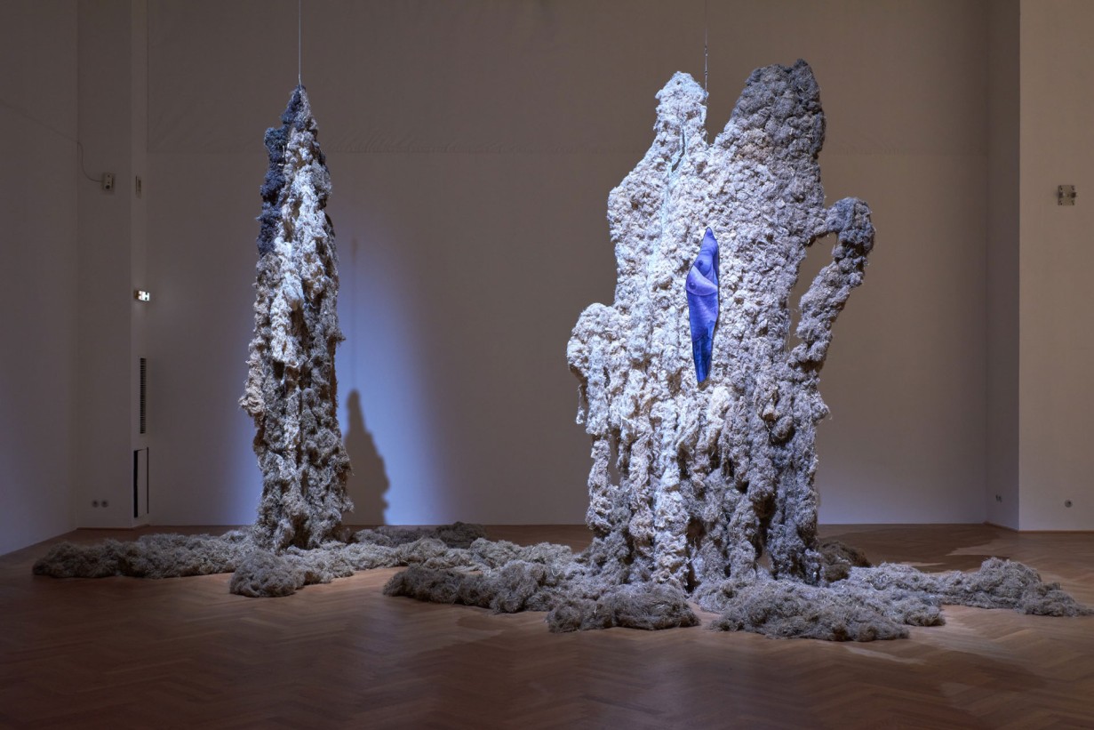 Während Textil mit Wärme und Flexibilität assoziiert wird, strahlt die aus weichem Ton oder Lehm geformte Keramik eine kühle Zerbrechlichkeit aus. Und doch zeichnen sich beide Medien durch eine erlebbare Formensprache aus, die zwischen hart, weich, sperrig und fließend changiert. Die Materialien, Formen und Bedeutungen der ausgewählten Objekte eröffnen ein breites Spektrum von Ambivalenzen, Unschärfen und Gleichzeitigkeiten.